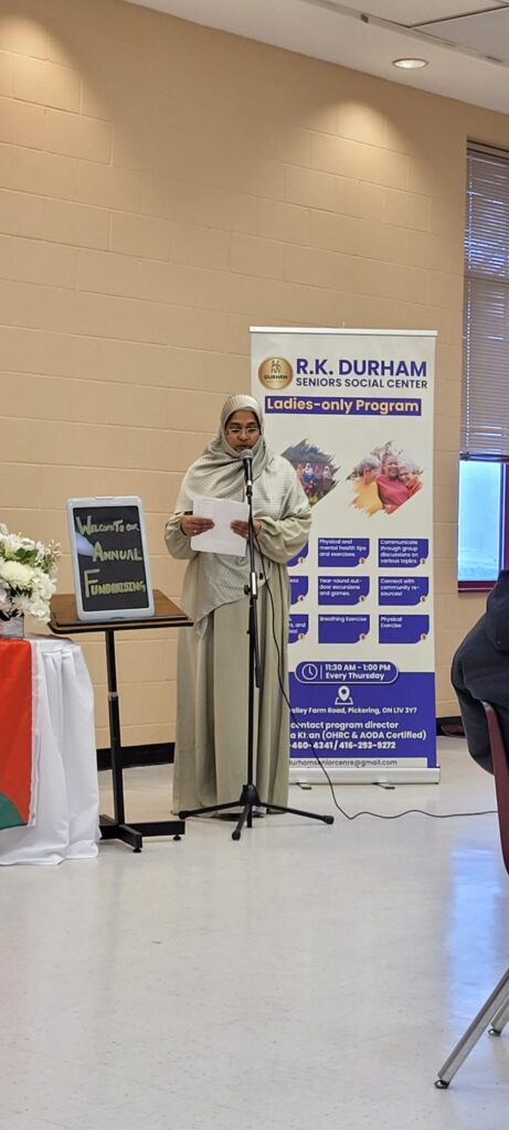 Samina Yasmeen ,Senior advisor ( Volunteer ) presenting her views on services of R.K Durham and the plan ahead for 2024.